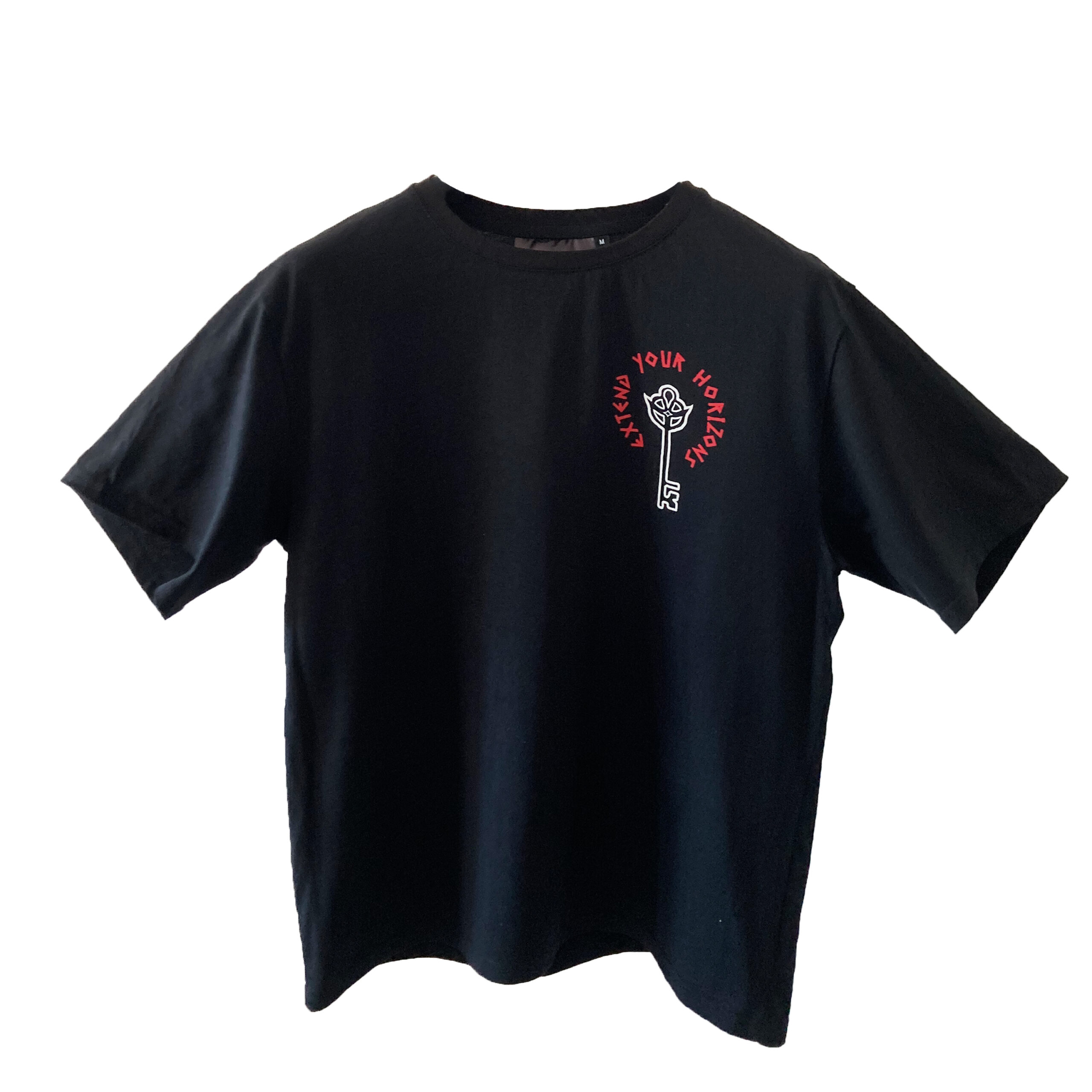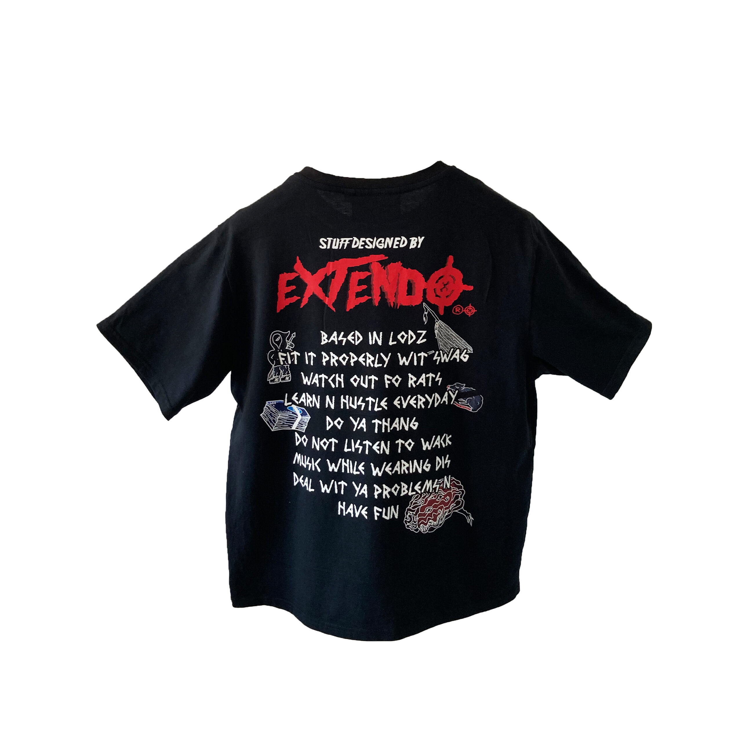 Tees wzorowany na metkach Extendo w kolorze czarnym.